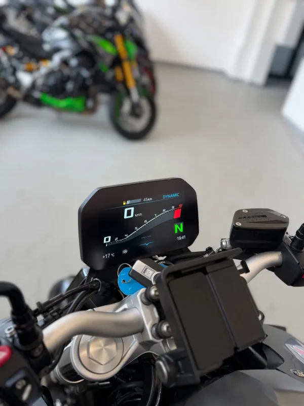 Bardzo bogate wyposażenie – Quickshifter, ABS+ESP Pro, Tryby Jazdy, Full LED, Kufer centralny, w pełni regulowane i sterowanie zawieszenie ZF, Hamulce Brembo, Keyless Go, Alarm, Grzane manetki, Tempomat, czujnik ciśnienia w oponach i wiele wiele innych