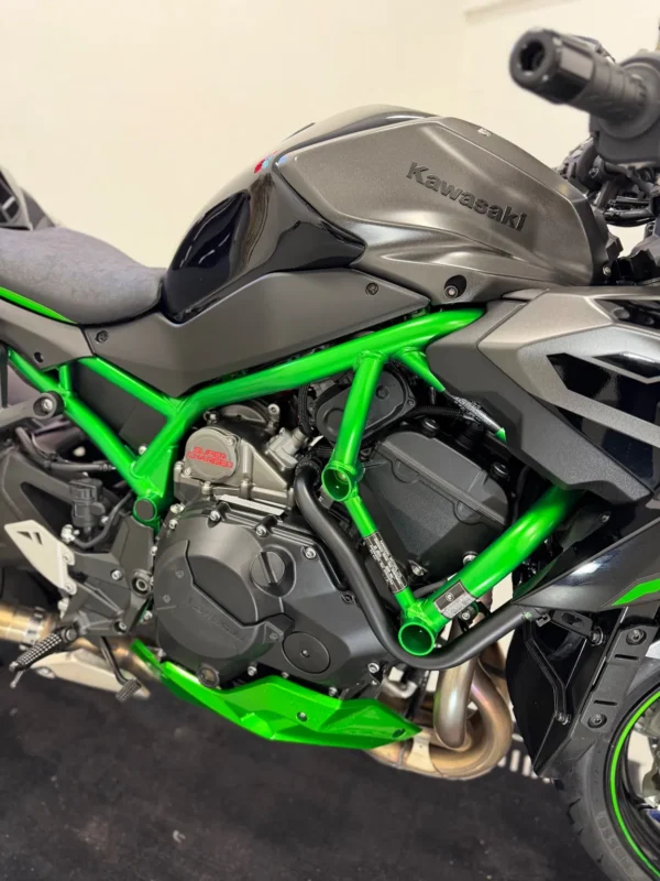 Nowy Z H2 SE to jeszcze wyższy poziom Supernaked. Wzmocniony o kilka nowych kluczowych funkcji – nowe elektroniczne zawieszenie Showa z technologią Skyhook, zaciski hamulcowe Brembo z serii H2 oraz nowa kolorystyka i grafika, sprawiają, że poziom emocji wychodzi poza wszelkie granice. Zmiany uzasadniają twierdzenie, że to on niezmiennie pozostaje Królem Supernakedów!